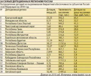 [77]Число дотационных регионов в России может сократиться до 60. – «Известия». – 2011. – 26 дек. http://izvestia.ru/news/510755.